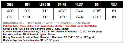 - Laser Match Set – Pack sets are sorted & matched by spine and weight for best-in-class consistency. Spine sorting tolerance +/- .0025” & Weight sorting tolerance +/- 2.0 grains