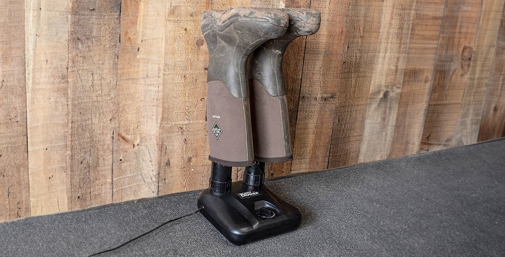 - The premium method for cleaning, drying, and removing odors from your shoes or gear is now available with the Scent Crusher Boot Dryer. The Ozone Boot Dryer uses a drying method that destroys odors by utilizing the power of heated air and ozone. The air pipes are adjustable to fit tall boots to small slip-on shoes. The Dryer can run up to three hours with a 110v AC and has an automatic shutoff timer so you can be worry-free.