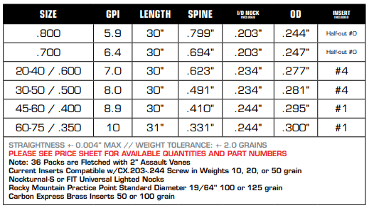 - Laser Match Set – Pack sets are sorted & matched by spine and weight for best-in-class consistency. Spine sorting tolerance +/- .0025” & Weight sorting tolerance +/- 2.0 grains